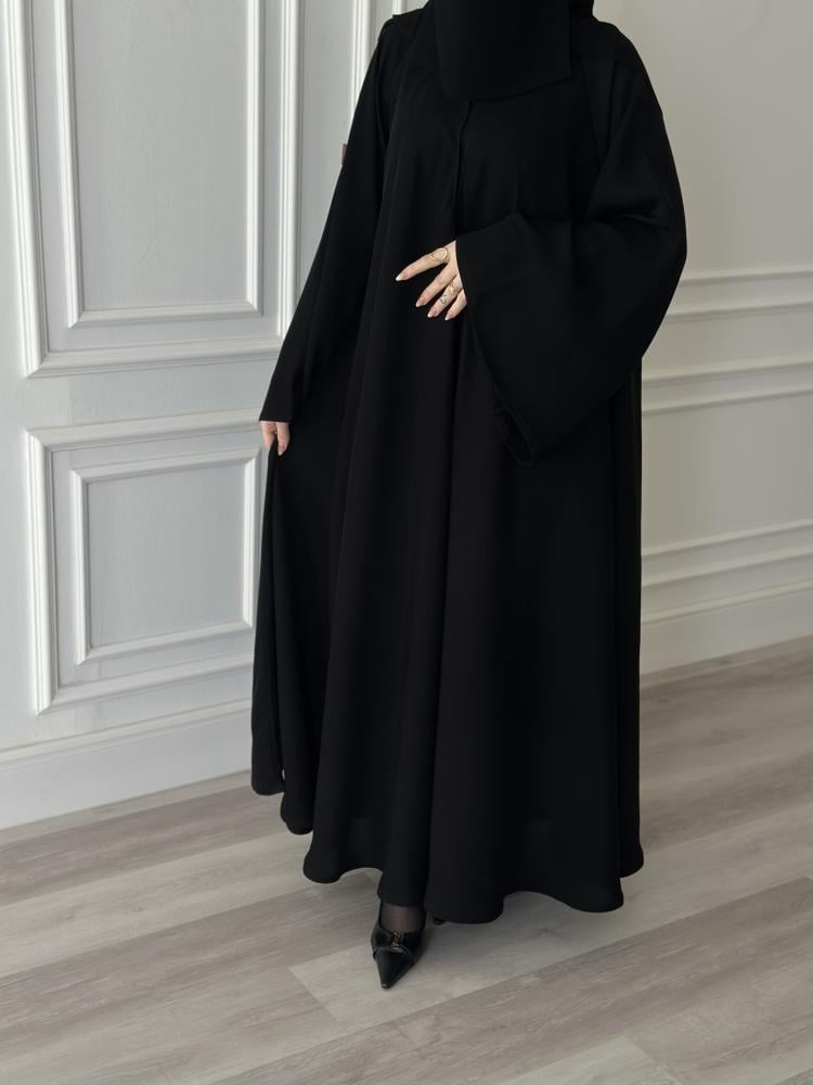 عبايه كلوش قماش انترنت مسكره طقطق من الصدر اكمام فرنسيه مع طرحه