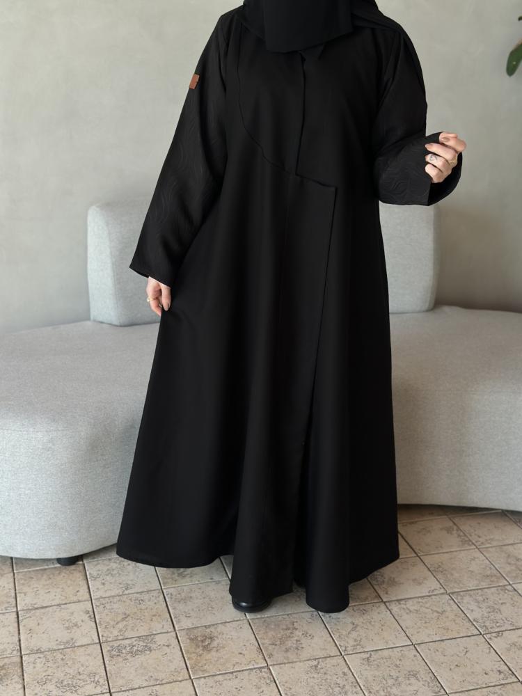 عبايه نص كلوش قماش كريب الاناقه و الاكمام جاكارا مع طرحه