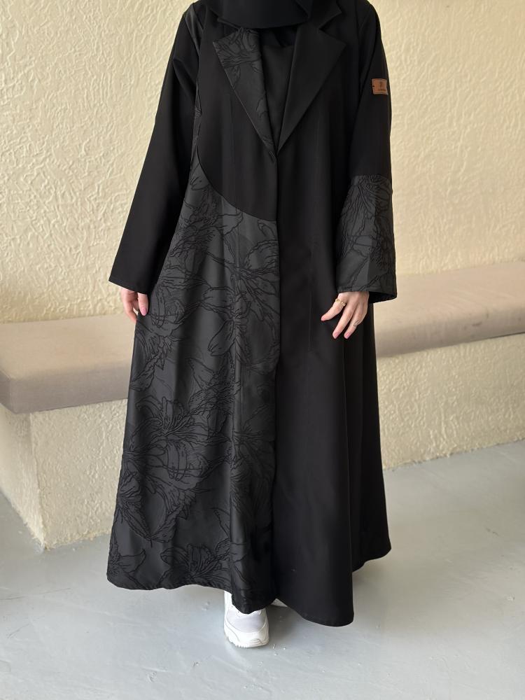 نقدم لكم عباية بليزر نص كلوش بتصميم يجمع بين الفخامة والراحة، حيث يتميز قماشها بمزيج من كريب الأناقة والجاكارا. تتميز بتصميم نص كلوش يمنحك حرية الحركة، مزودة بطقطق كامل مع مرد داخلي لتسهيل الارتداء. تأتي مع طرحة بسيطة تزين إطلالتك اليومية وتضفي انسجام على المظهر العام.