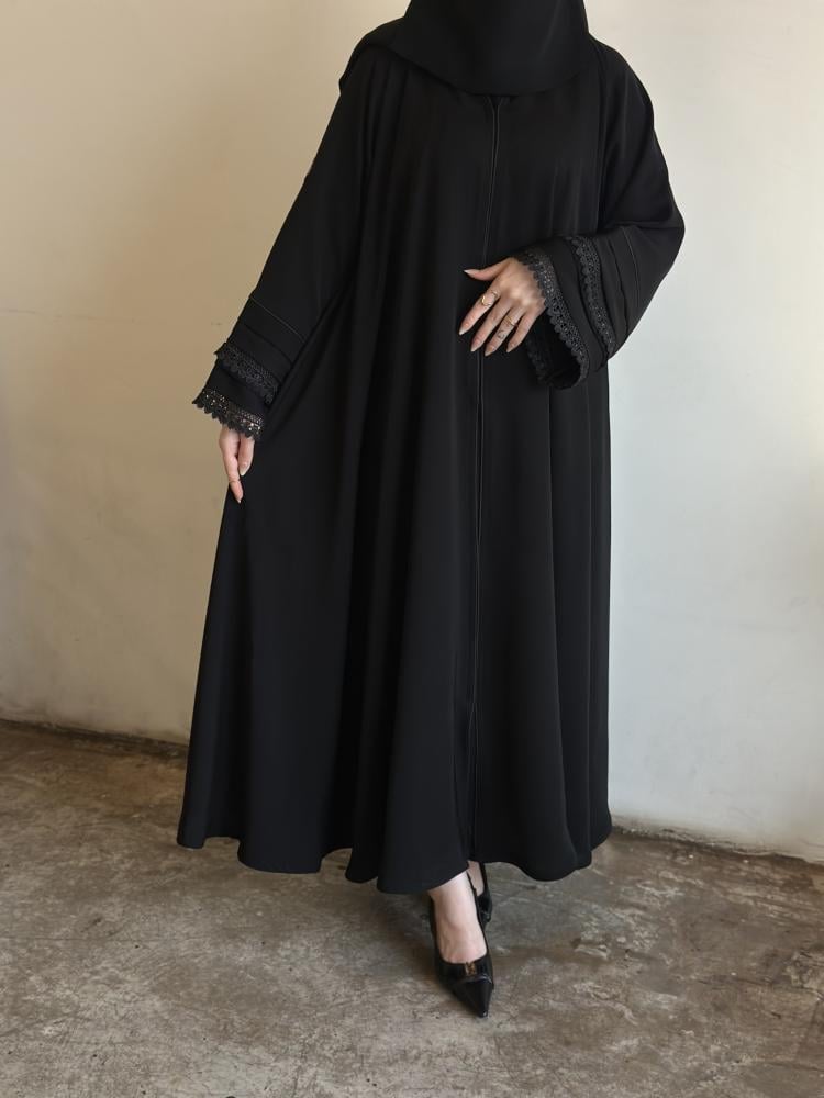 عبايه طقطق قماش انترنت نص كلوش طقطق و اكمام كلفه دانتيل مع طرحه
