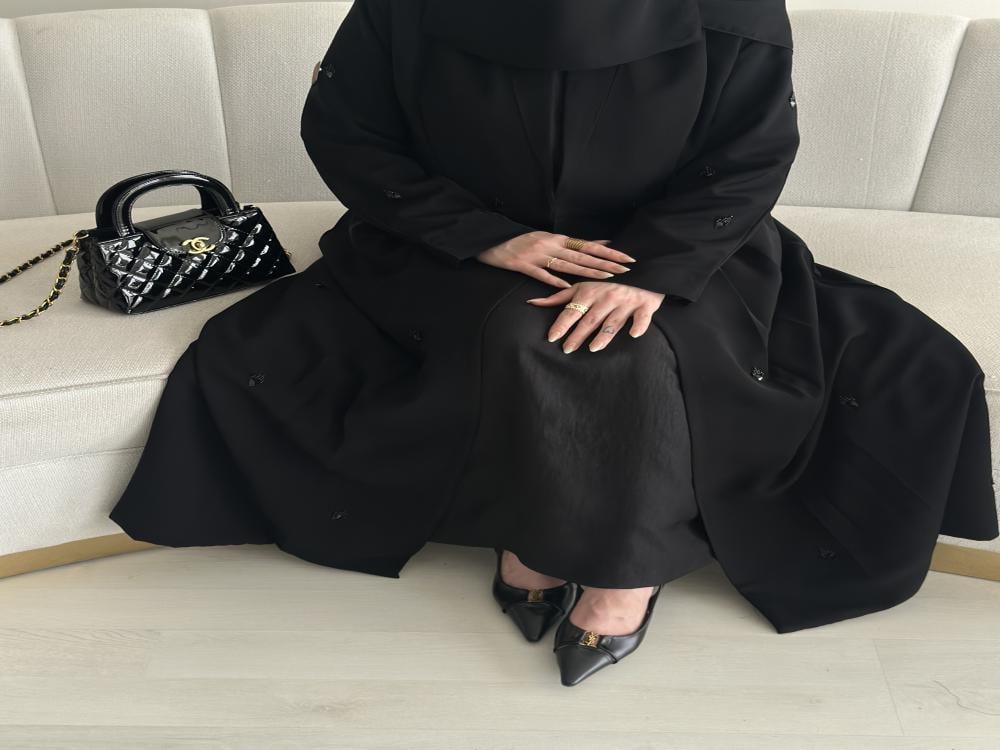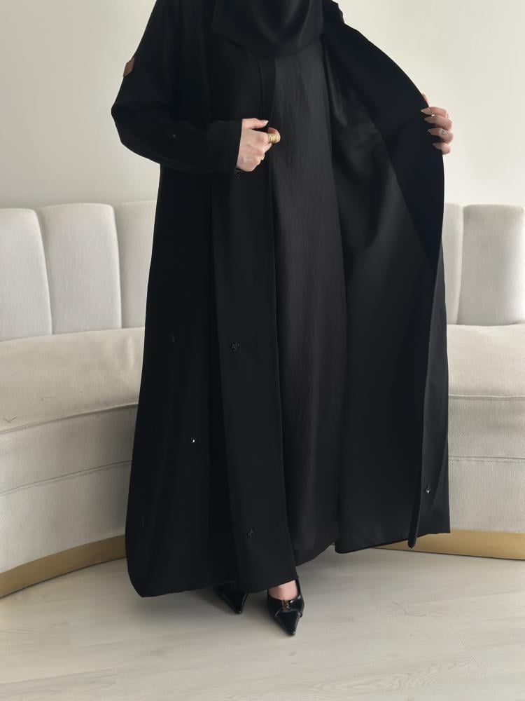 عبايه قماش لمار مبطنه من داخل و كسرات من الامام و الخلف و كرستال مع طرحه